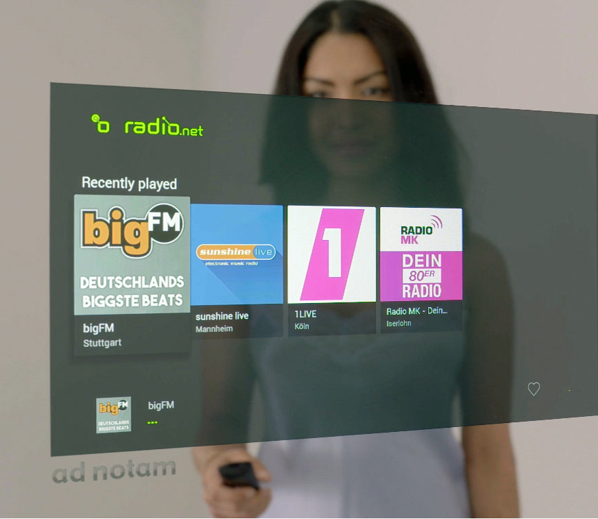 ad notam`s direct-on-glass (DOG) mounting system enables gapless installation between the mirror and the screen, resulting in a crystal clear picture. Competitive models often have a gap between the mirror and the screen resulting in a poor image quality with reduced lifetime.